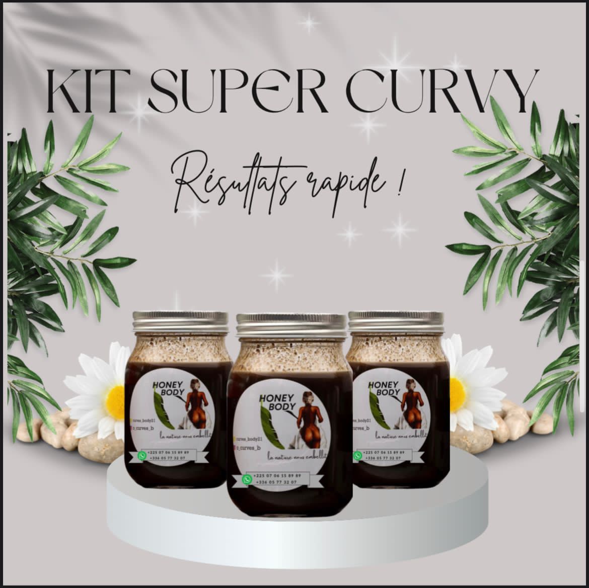 Ce kit est composé de trois Honey Body pour le développement des courbes. Ce kit ciblera principalement les hanches et le fessier et vous aidera naturellement à développer votre bassin rapidement.